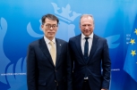 On Dec. 12, IBK established an international cooperation network in Luxembourg to support Korean SMEs and startups. Kim Sung-tae, CEO of IBK, poses for a photo with Gilles Roth, Luxembourg¡¯s Minister of Finance and chairman of LHoFT at the Luxembour¡¦