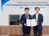 President Jeong Jeong-hoon of Korea Asset Management Corporation (KAMCO) and President Kim Jun-seok of the Korea Maritime Transportation Safety Authority (KOMSA) pose for a group photo after they signed an MOU to remove blind spots in ship financing ¡¦