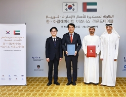 (from left) Minister of Trade, Industry and Resources Kim Jung-kwan, K-SURE President Jang Young-jin, ADNOC CFO Khaled Al Zaabi and Thani bin Ahmed Al Zeyoudi, Minister of State for Foreign Trade, pose for a photo after K-SURE signed an MOU for busin¡¦